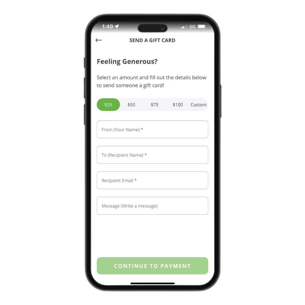 - Physical gift cards can also be uploaded into the app for use on the go!